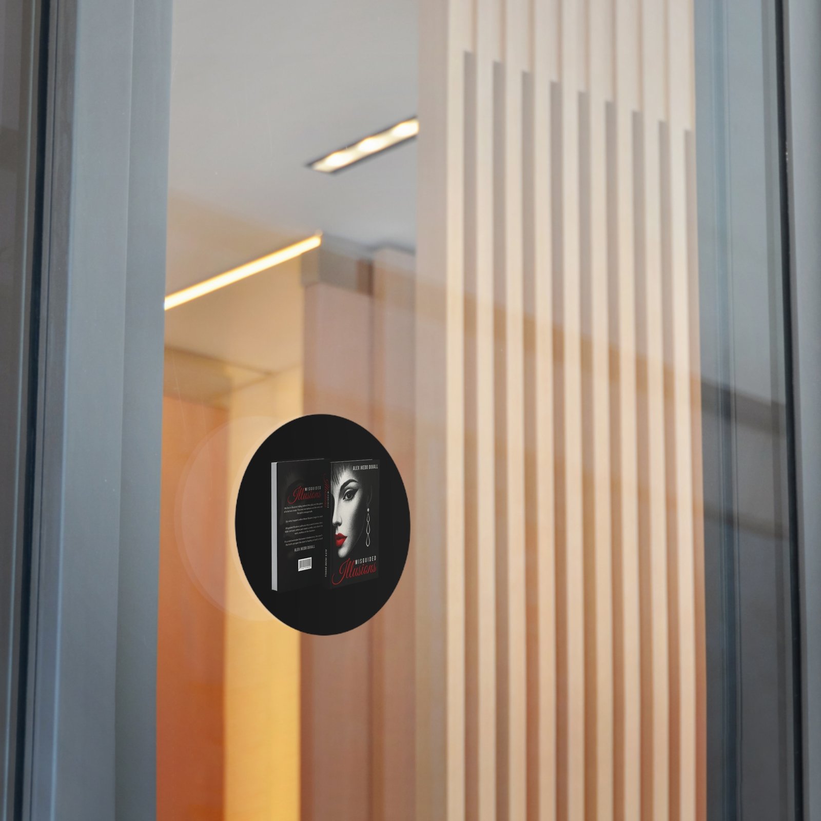 These round vinyl stickers bring a touch of noir glamour to journals, laptops, and bookish corners. The design features a high-contrast, vintage-style portrait with deep blacks and a bold scarlet lip—an elegant, dramatic accent that reads like a chapter heading. The matte surface keeps reflections low and the UV-protective laminate preserves the print outdoors, so the image stays moody and rich even on water bottles, luggage, or a camera case. Slap one on a paperback, tuck one inside a journal, or decorate a planner to carry a little theatrical flair through everyday routines.